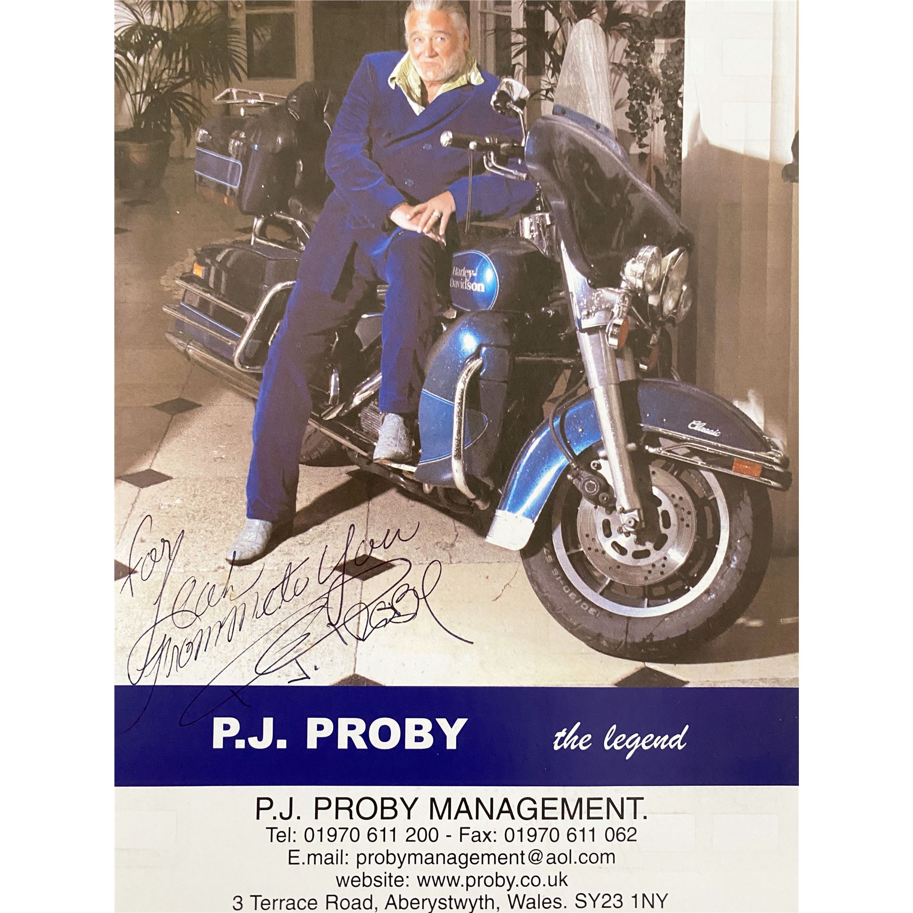 Singer / songwriter P.J. Proby signed postcard. 6x8.5 inches