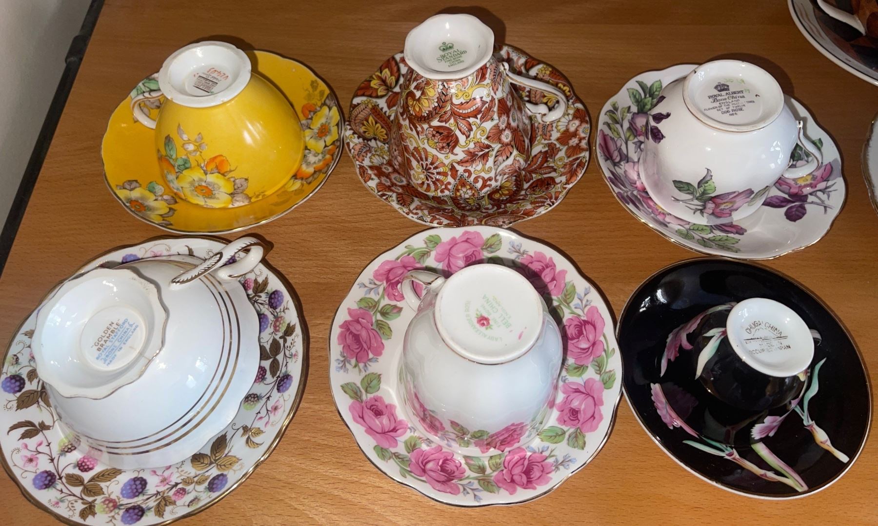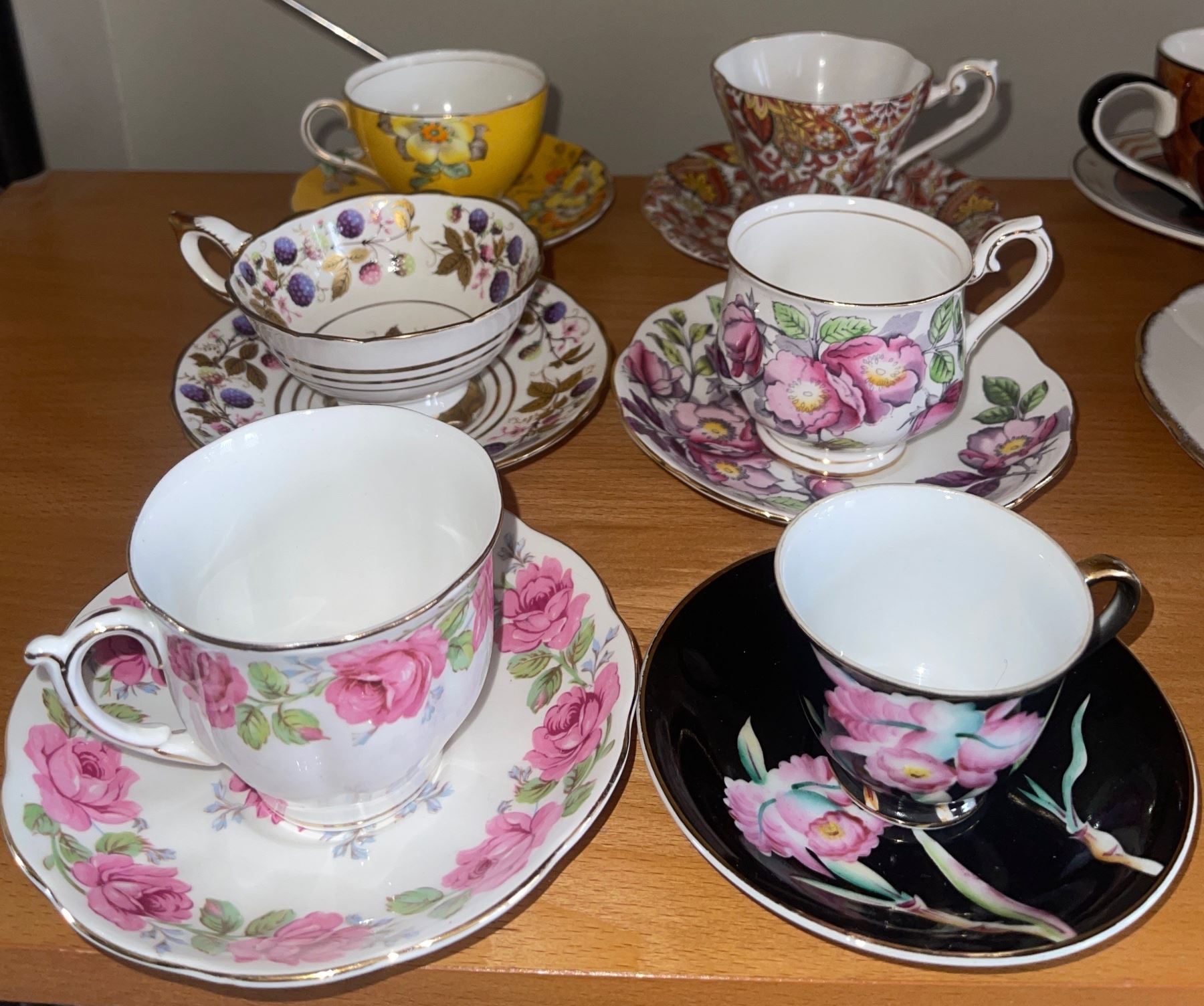 Six Collectible Tea Cups Golden Bramble, Lady Alexandra Rose, Royal Standard & More