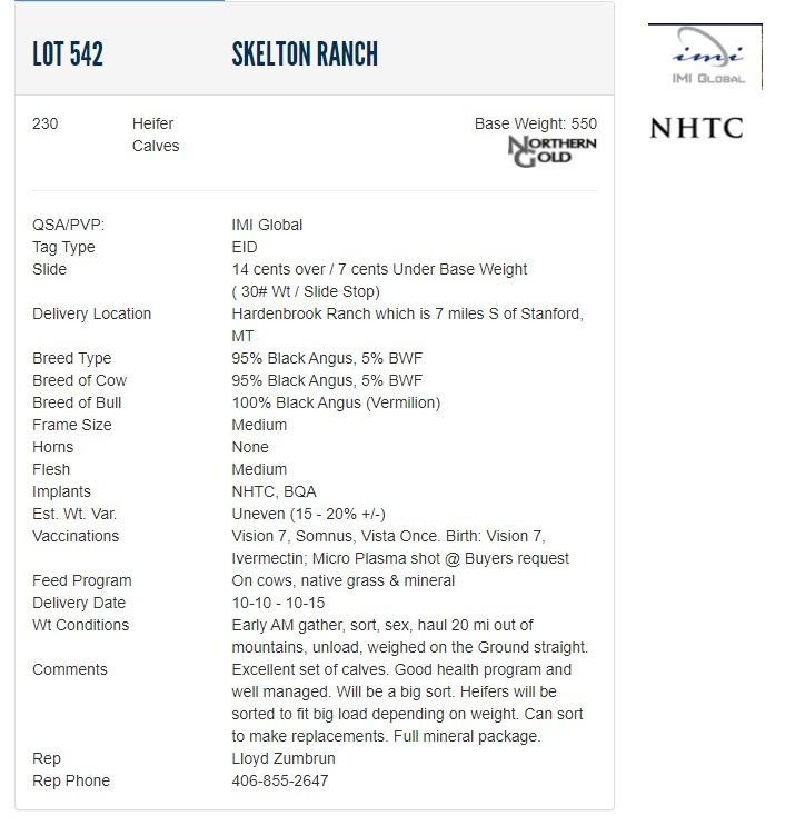 Skelton Ranch - 230 Heifers; Base Weight: 550