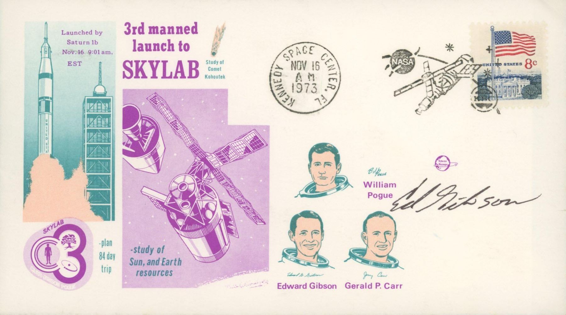 Skylab signed envelope autographed by Edward Gibson.