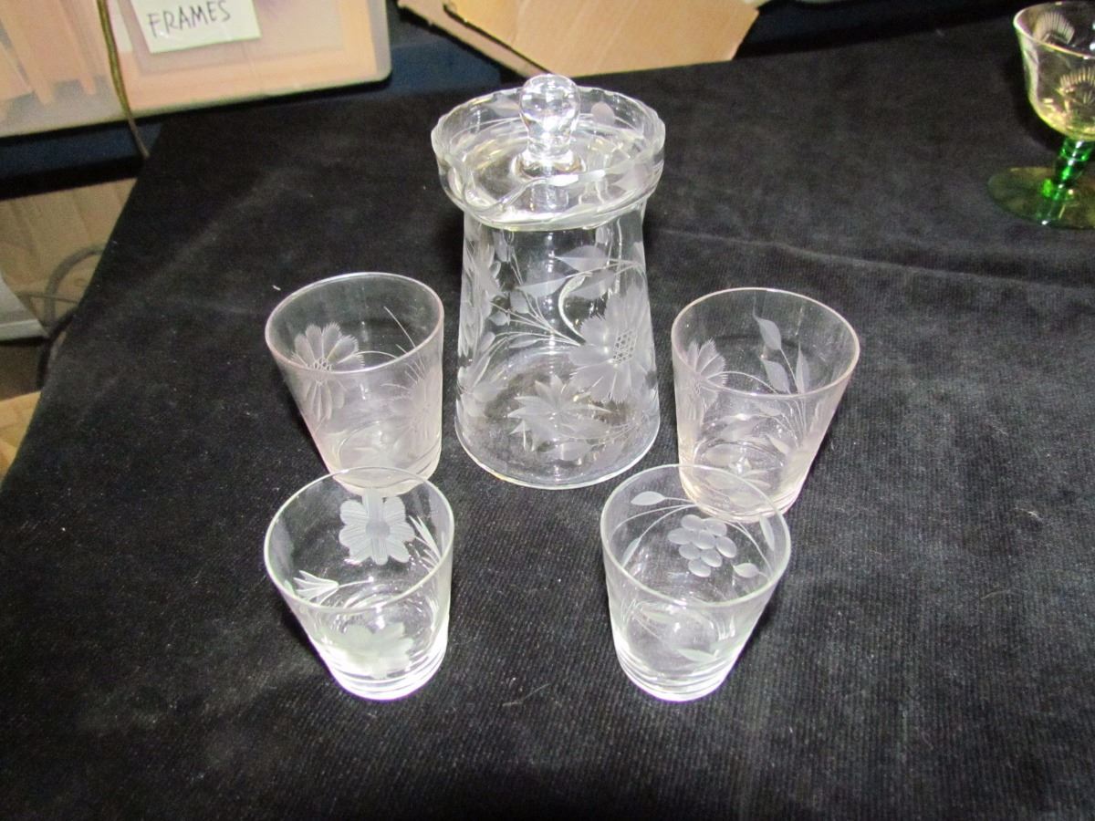 Smal Cut Glass Bedside Water Carafe with 2 Pair of Glasses