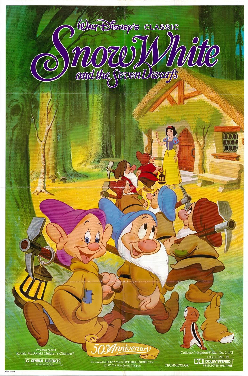 Snow White and the Seven Dwarfs 50th Anniversary original 1987R vintage one sheet movie poster