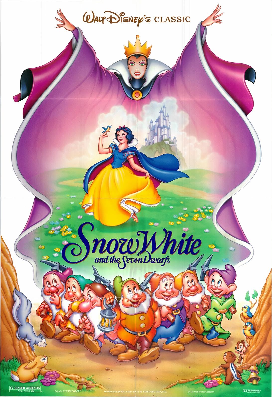 Snow White and the Seven Dwarfs original 1993R vintage one sheet movie poster. Folded. 27X41 Inches