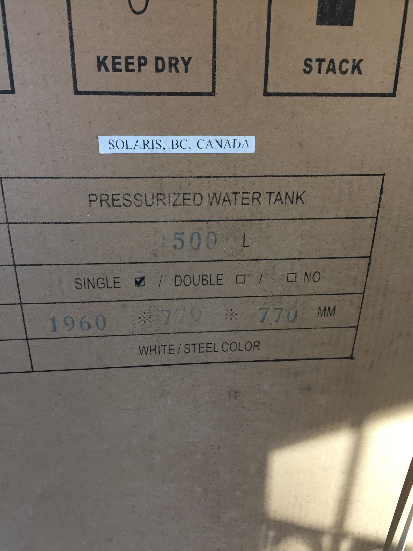Solaris 500L Double Wall Pressurized Water Tank - Whit