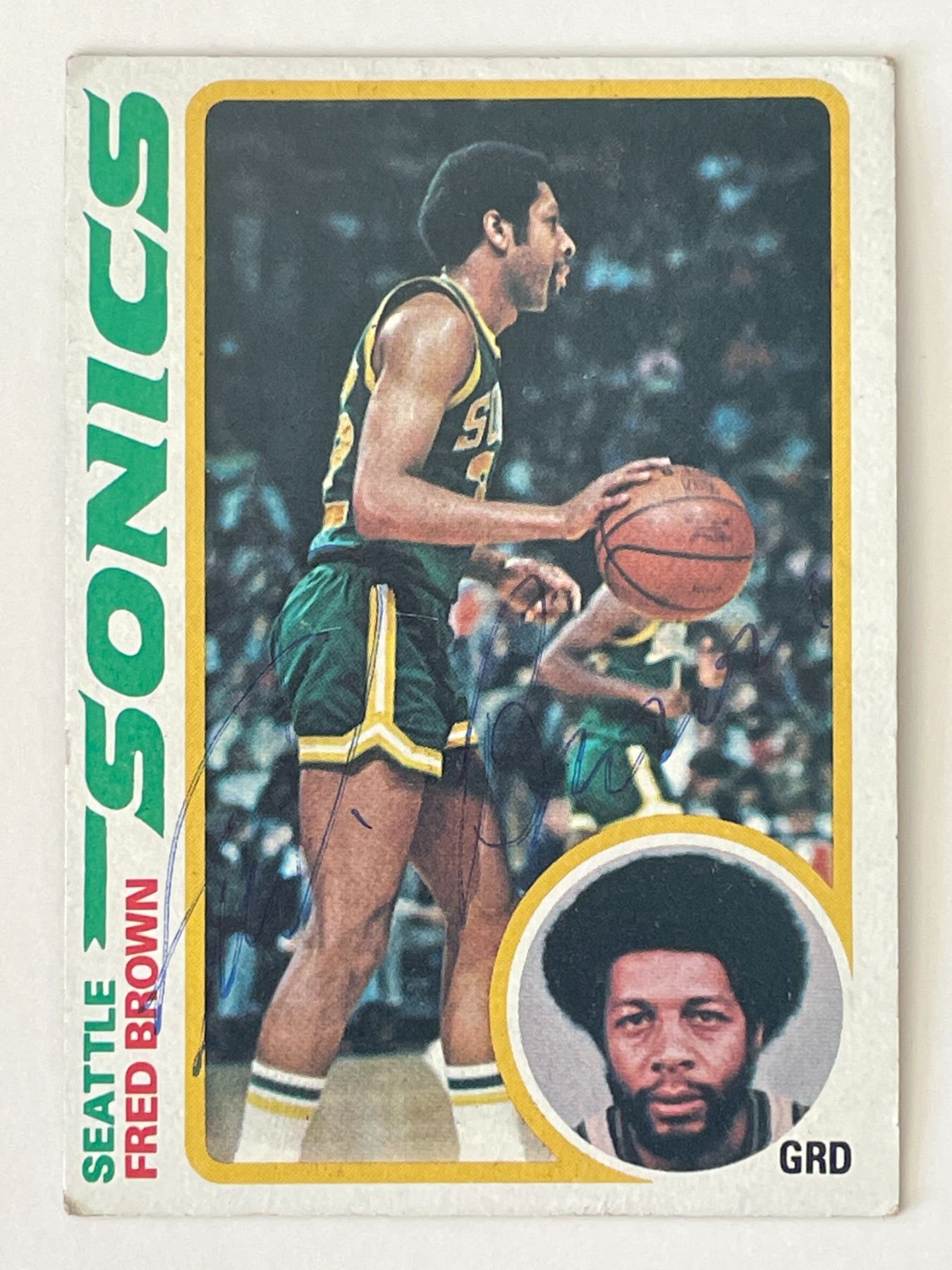 Sonics Fred Brown signed 1978-79 Topps trading card #59. 2x3 inches
