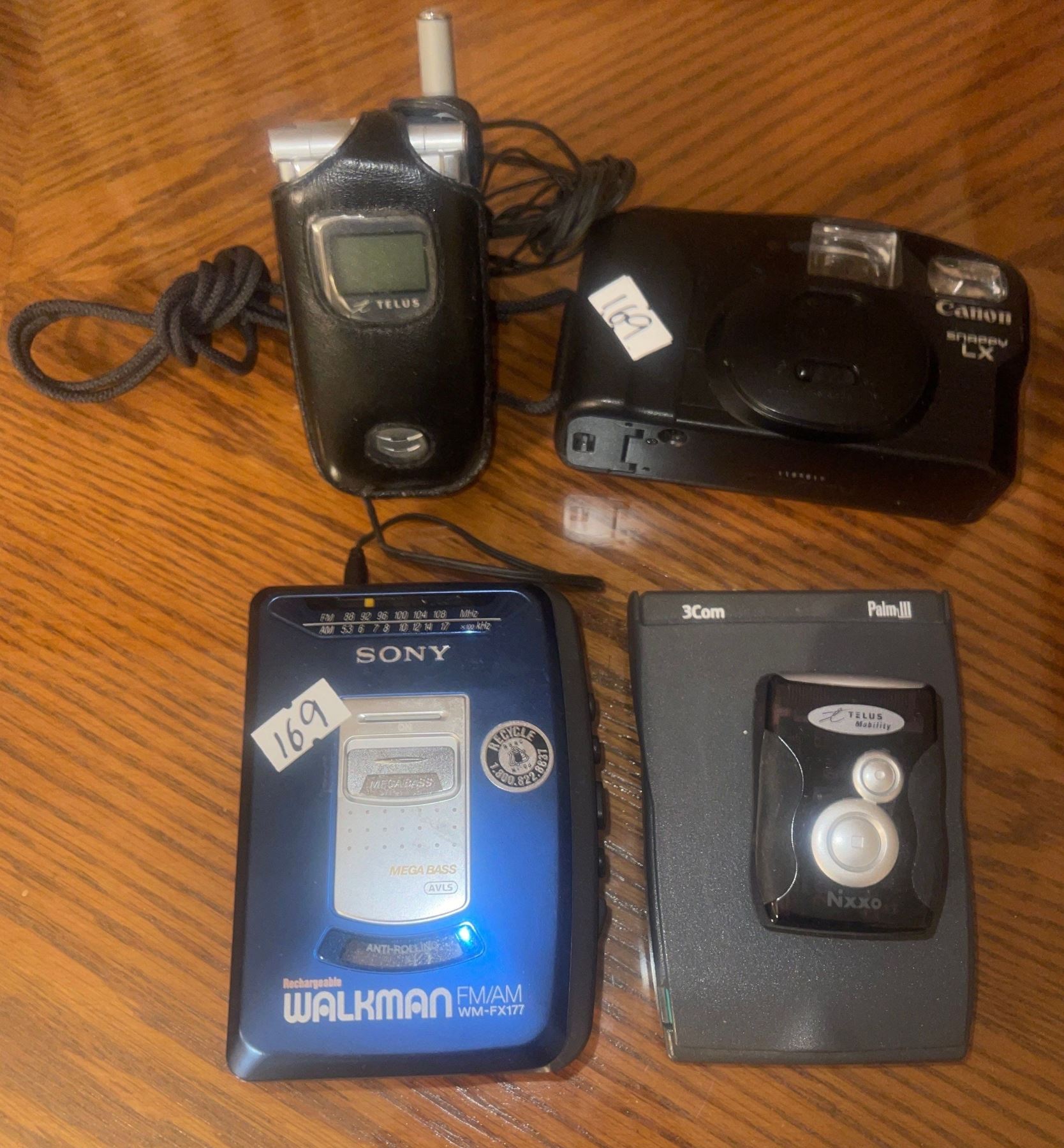 Sony Walkman Portable Cassette Player , GPS, Vintage Camera And Small Flip Phone