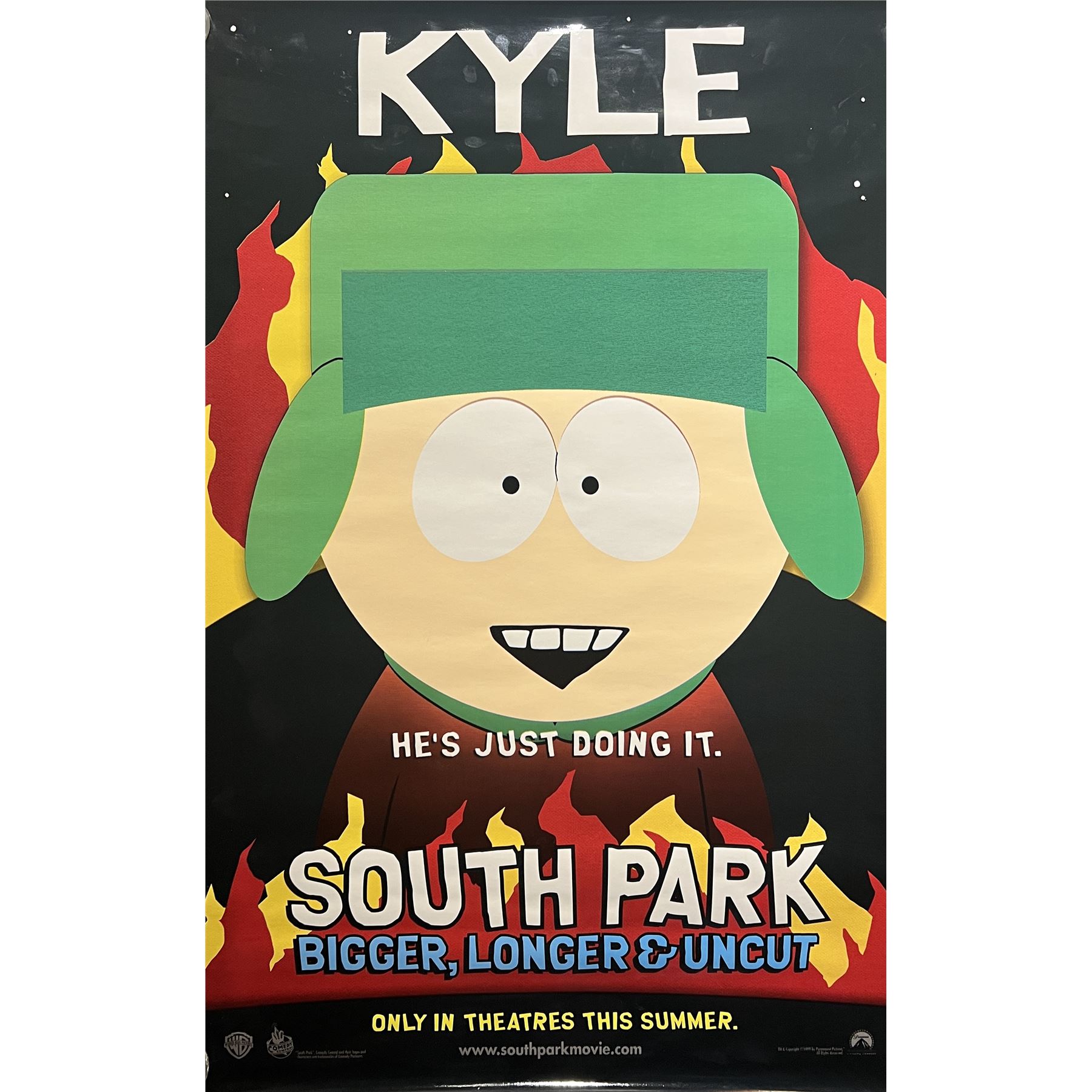 South Park Kyle 1999 Bigger Longer Uncut Original Bus Shelter Movie Poster. 30X46 Inches This item is part of an exclusive collection obtained from an executive at Paramount Pictures.