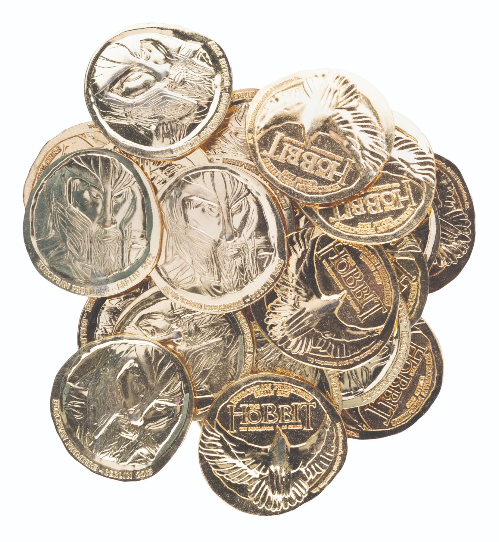 (Warner Bros., 2013) A large collection of 21 souvenir gold-toned coins gifted to attendees at the European premiere of "The Hobbit: The Desolation of Smaug” in Berlin. Measuring 1.75” in diameter each, the coins are in fine condition.