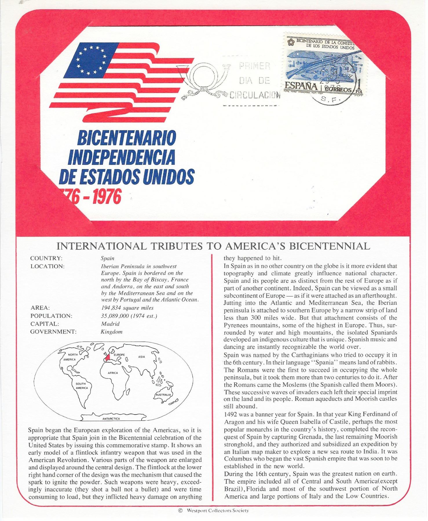 Spain FDC - Bicentenario Independencia De Estados Unidos 1776-1976 - Primer Dia De Circulacion - 20-5-1976