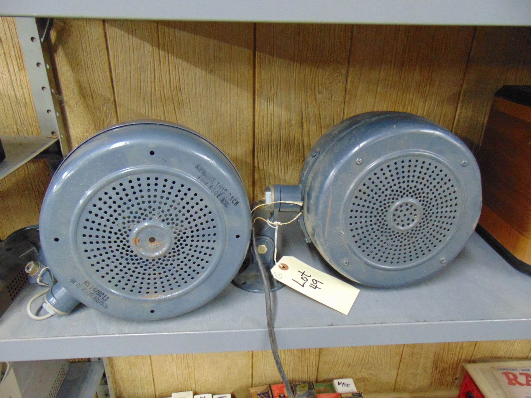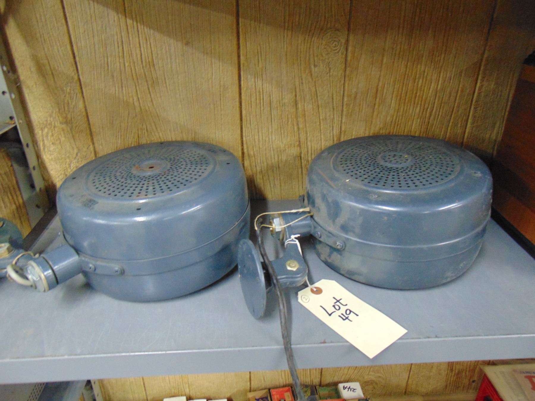 Two Dukane speakers; wall mounted; stamped with Western Electric KS number