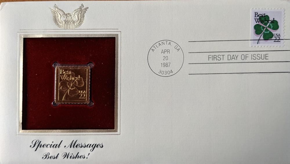 Special Messages Best Wishes Gold Stamp Replica First Day Cover. Atlanta, GA Apr. 20 1987