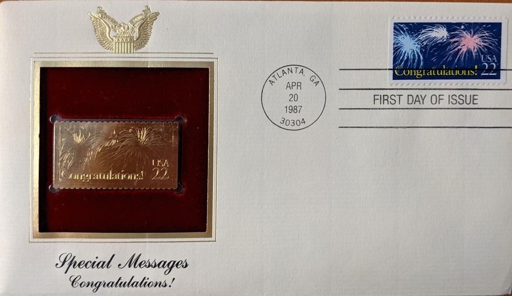 Special Messages Congratulations Gold Stamp Replica First Day Cover Atlanta, GA APR 20 1987