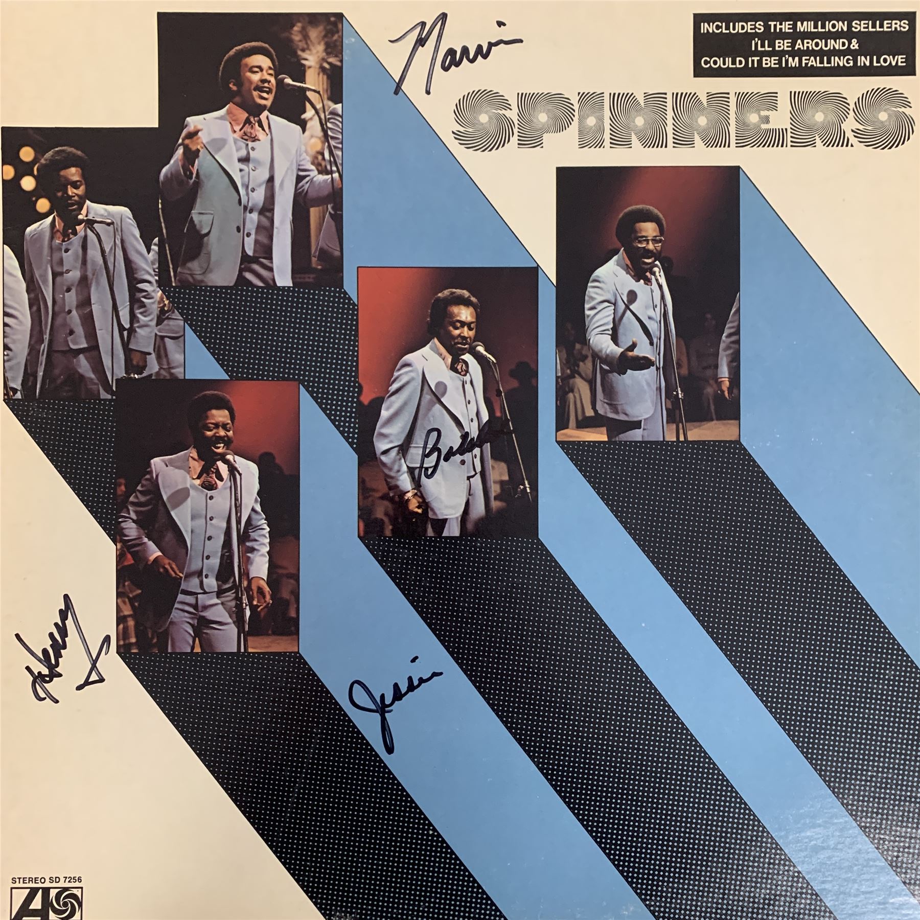 Spinners signed album autographed by Marvin Taylor, Bobby Smith, Henry Fambrough and Jessie Robert Peck. 12x12 inches. Vinyl included