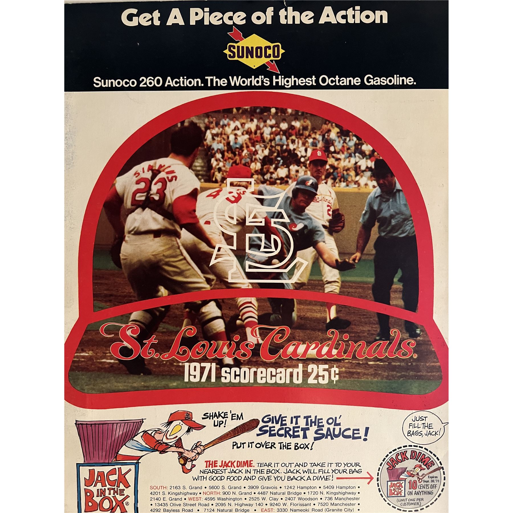 St Louis Cardinals 1971 scorecard. 8x11 inches