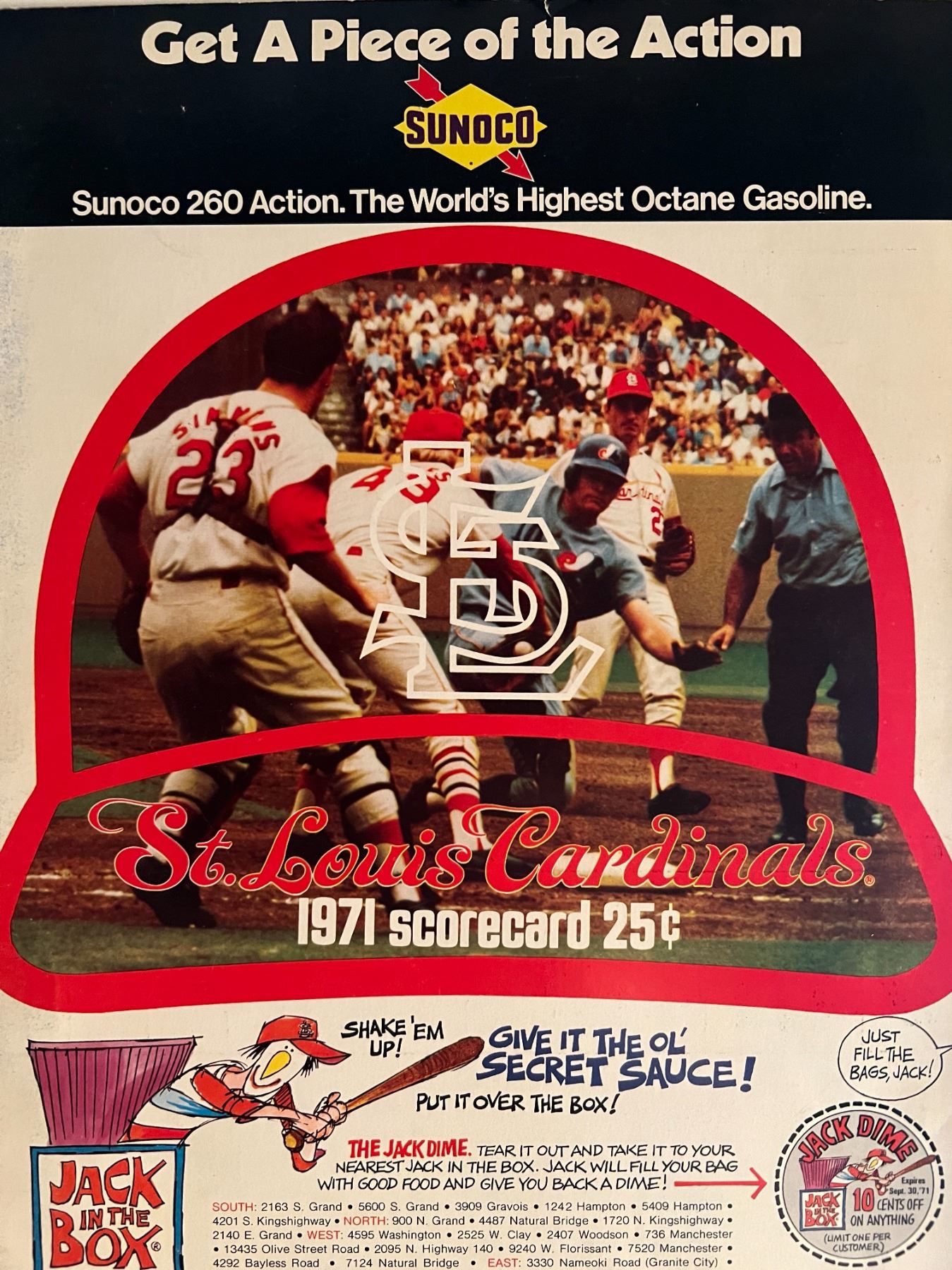St Louis Cardinals 1971 scorecard. 8x11 inches