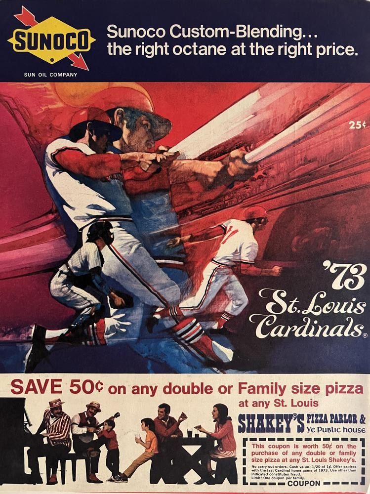 St Louis Cardinals 1973 scorecard. 8x11 inches