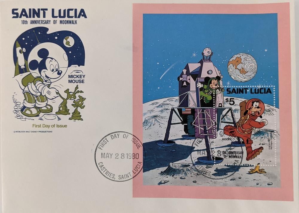 St. Lucia Goofy on the Moon 10th Anniversary Moonwalk Commemorative First Day Cover. May 28th 1980