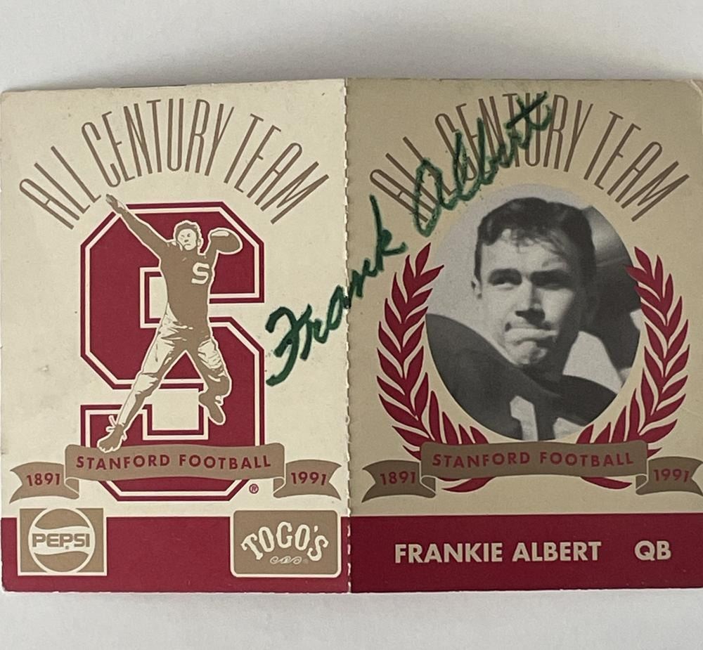 Stanford Football Frankie Albert signed 1991 trading card. 2x3 inches