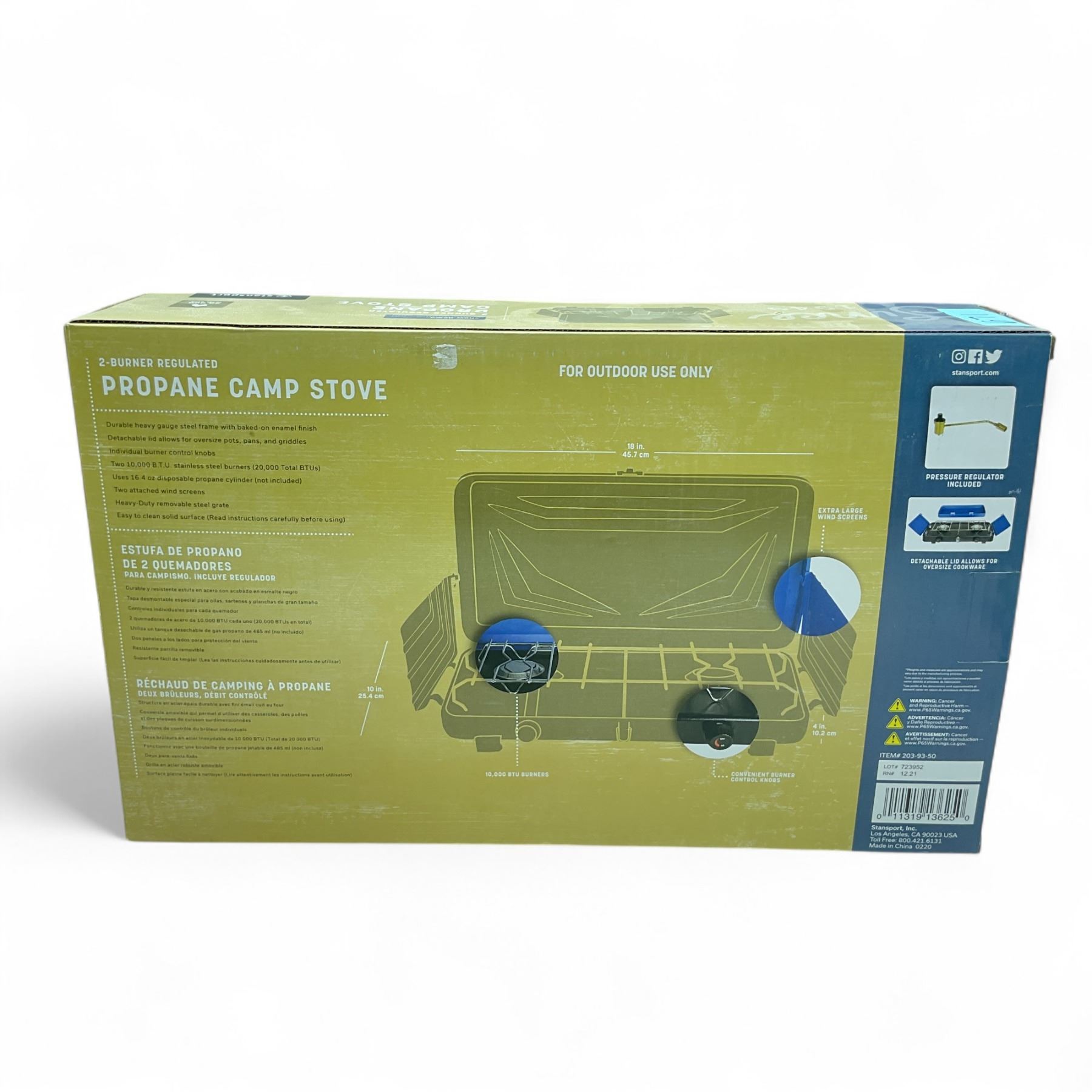 Stansport 2-Burner Regulated Propane Camp Stove, 18" x 10" x 4", New