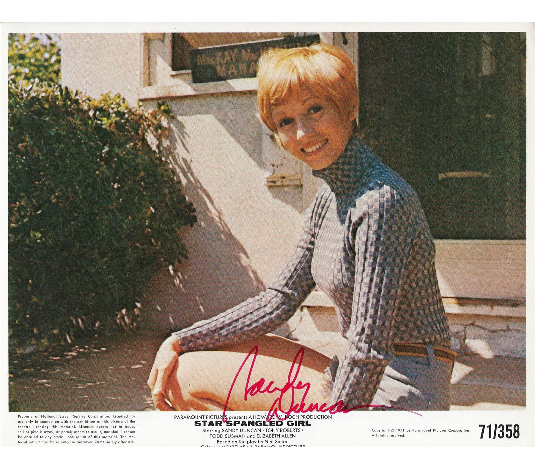 Star Spangled Girl signed movie photo autographed by Sandy Duncan. 8x10 inches