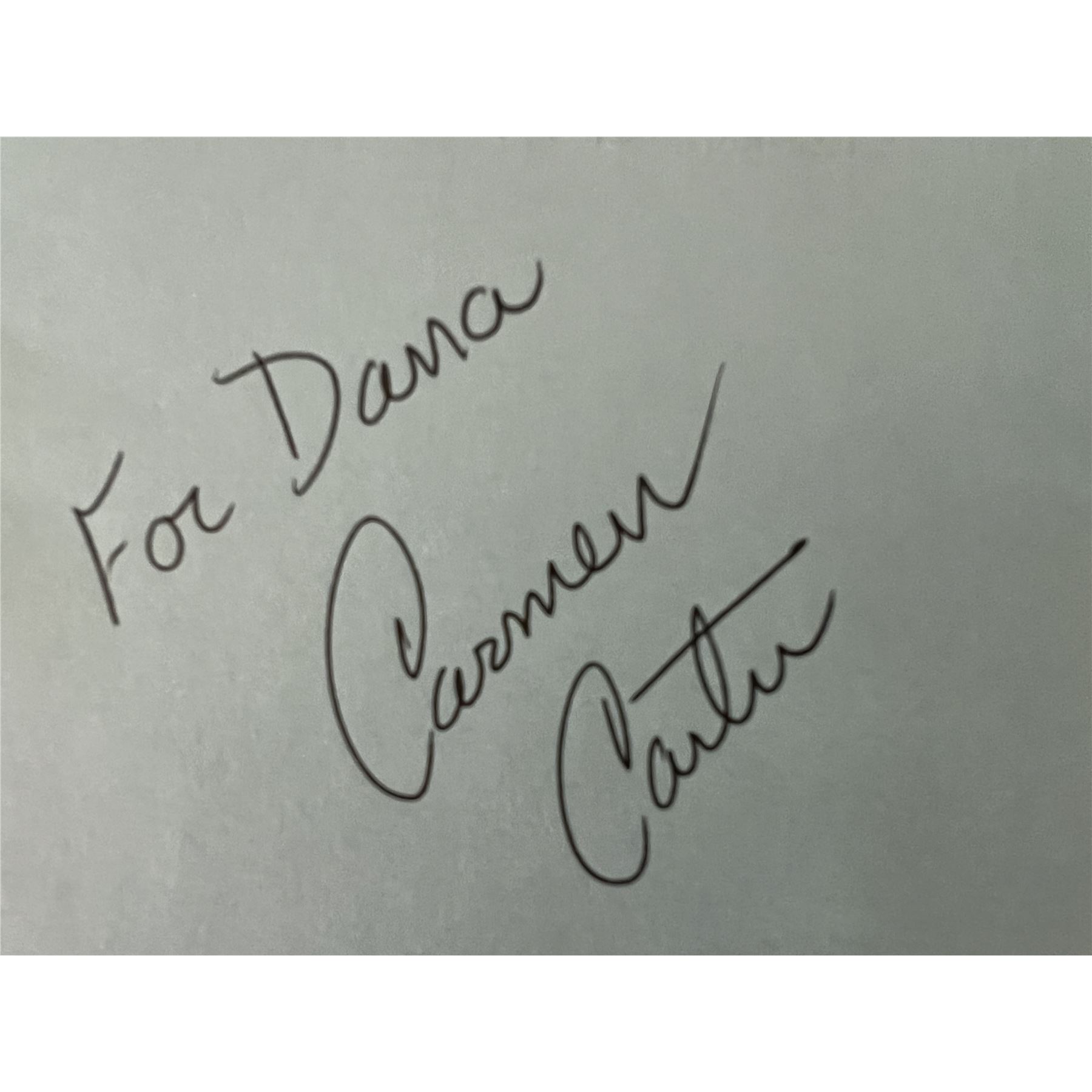 Star Trek writer Carmen Carter autograph. 4 x 6 inch