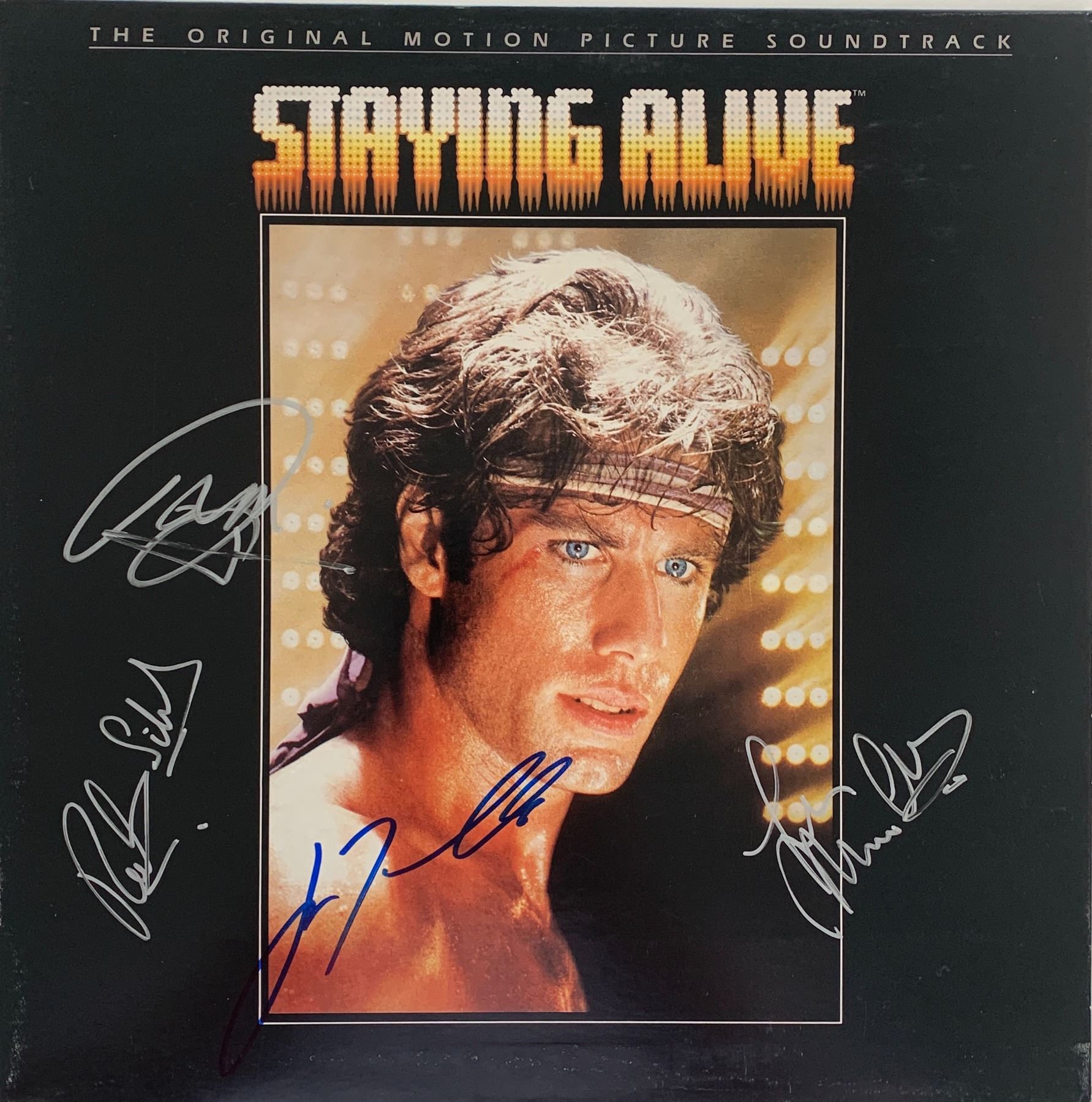 Staying Alive signed sound track autographed by John Travolta, Barry Gibb, Robin Gibb and Maurice Gibb