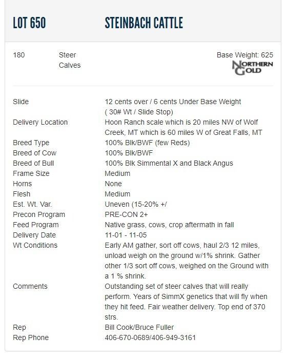 Steinbach Cattle - 180 Steers; Base Weight: 625