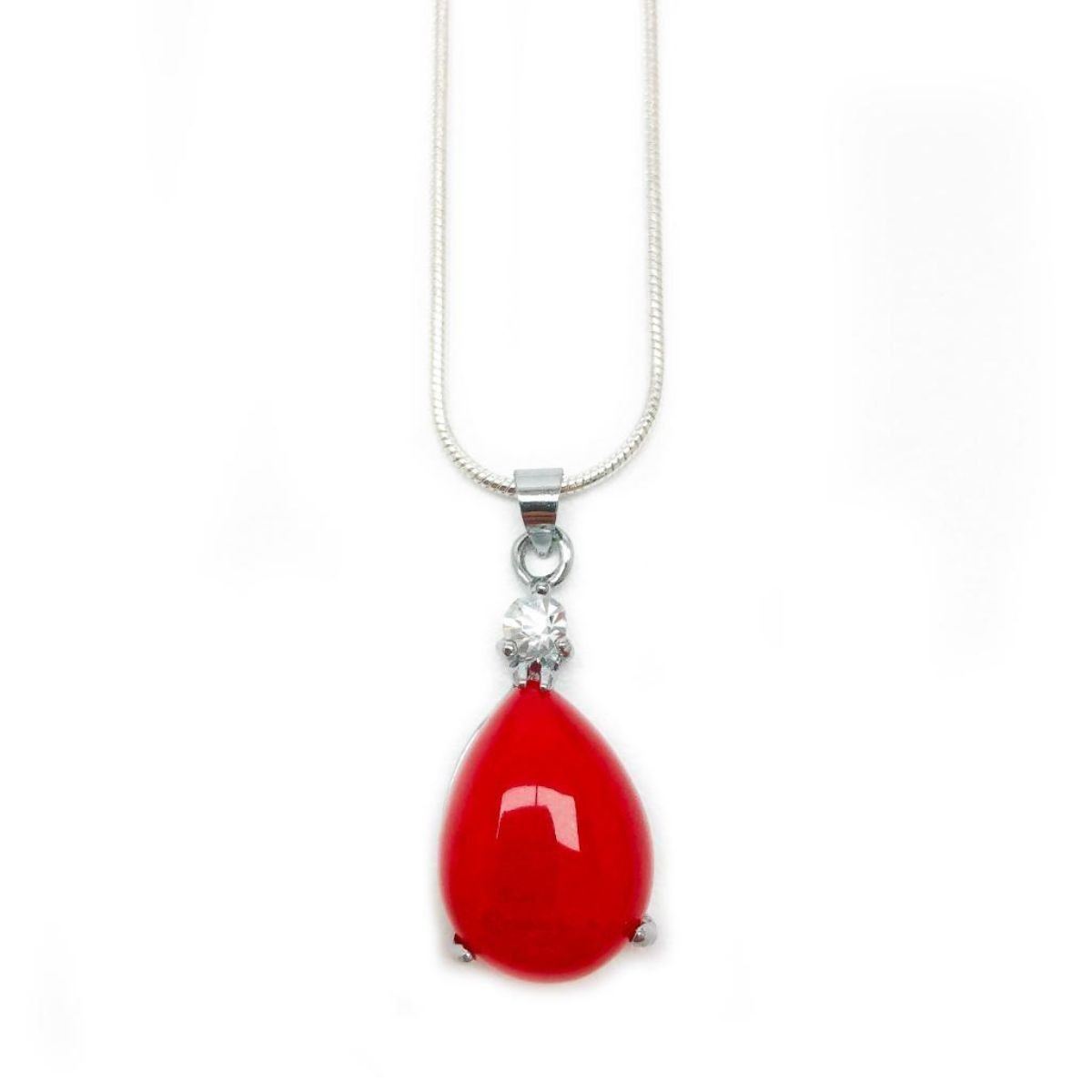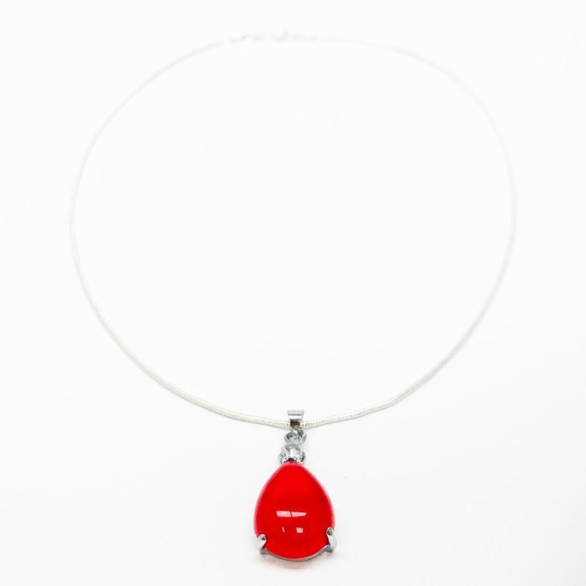 A Marked 925 Silver Necklace With A Red Jade Tear Drop Pendant Mounted. The Pendant Also Has A Mounted Stone Above The Tear Drop Jade Piece. View Pictures For Details.