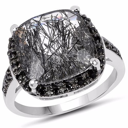 Black Rutile Cushion 12.00mm - 1Pc + Black Spinel Round 1.00mm - 26Pcs ( Black Pan Rhodium )