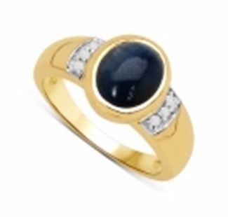 Sterling Silver Cabochon Blue Sapphire and Diamond Ring