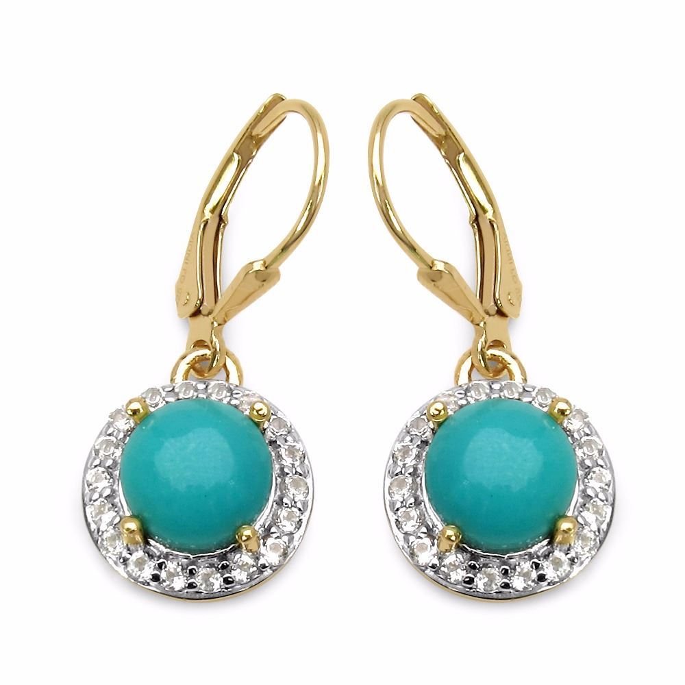 Turquoise Cabochon Round 8.00mm - 2Pcs + White Topaz Round 1.50mm - 36Pcs ( White Pan Rhodium )