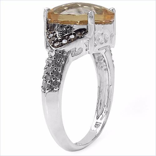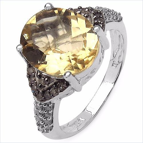 Citrine Briolite Oval 12x10mm - 1Pc + Champagne Diamond S/C Round 1.20mm - 16Pcs + White Diamond S/C Round 1.10mm - 26Pcs ( Black pan Rhodium ) ( With J Back )