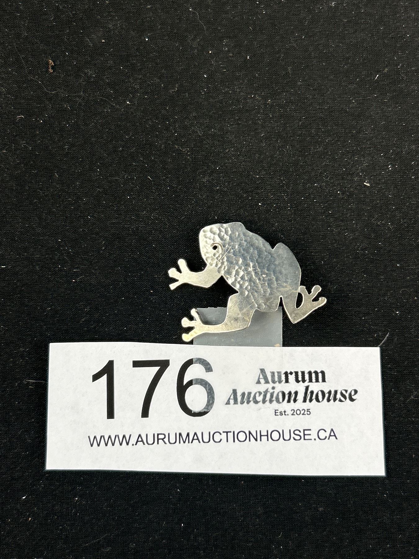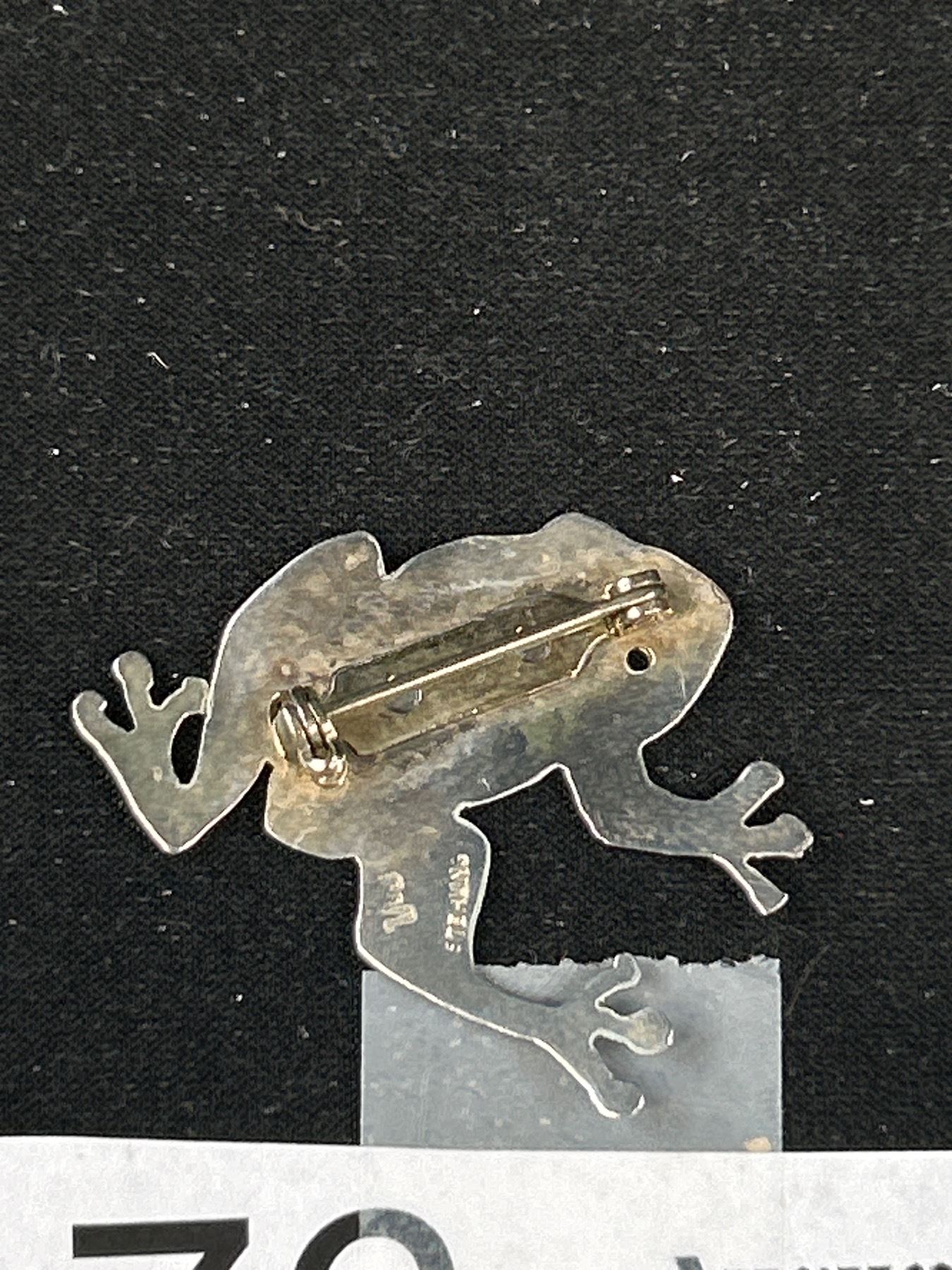 Sterling Silver Frog Brooch Unusually Design Marked Sterling