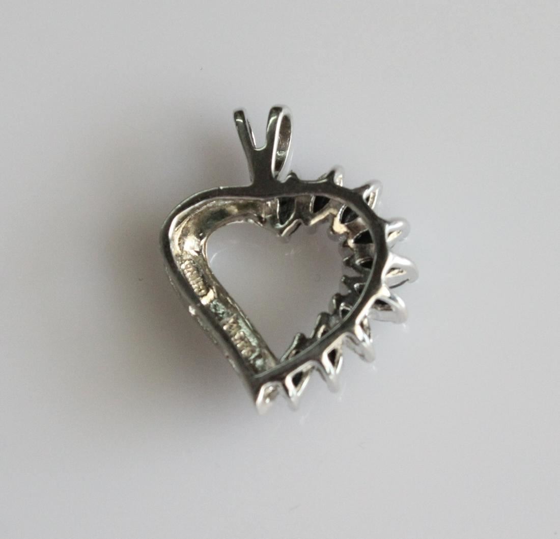 Sterling silver heart pendant set with nine marquis-shaped sapphires and an illusion set diamond. 2.5g in weight, measuring 22.8mm x 12.5mm