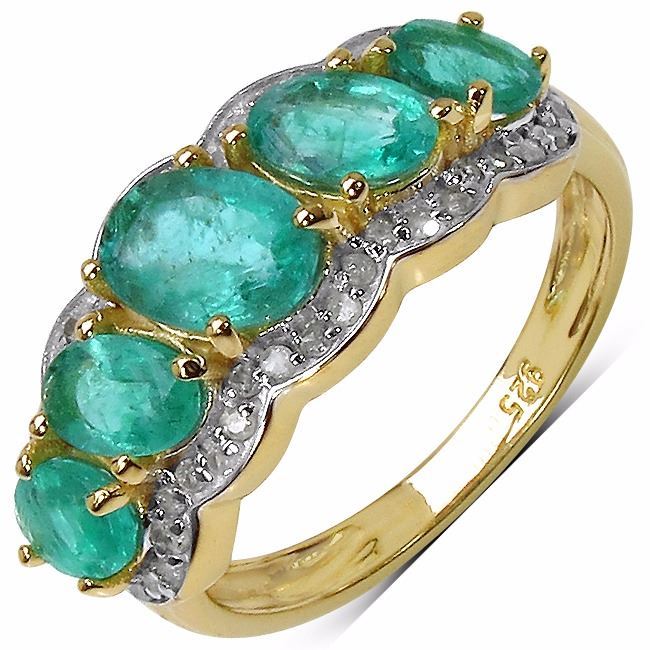 Zambian Emerald Oval 7x5mm - 1Pc + Zambian Emerald Oval 5x4mm - 2Pcs + Zambian Emerald Oval 6x4mm - 2Pcs + White Topaz Round 1.00mm - 46Pcs ( White Pan Rhodium )