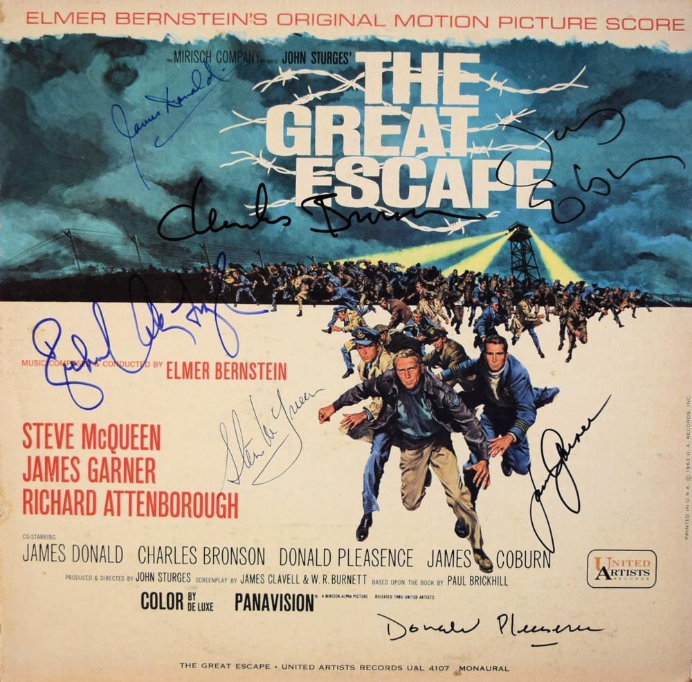 1963 Soundtrack to the Original Motion Picture The Great Escape. Signed: Steve McQueen, Charles Bronson, James Garner, James Donald, Donald Pleasence, Richard Attenborough & James Coburn