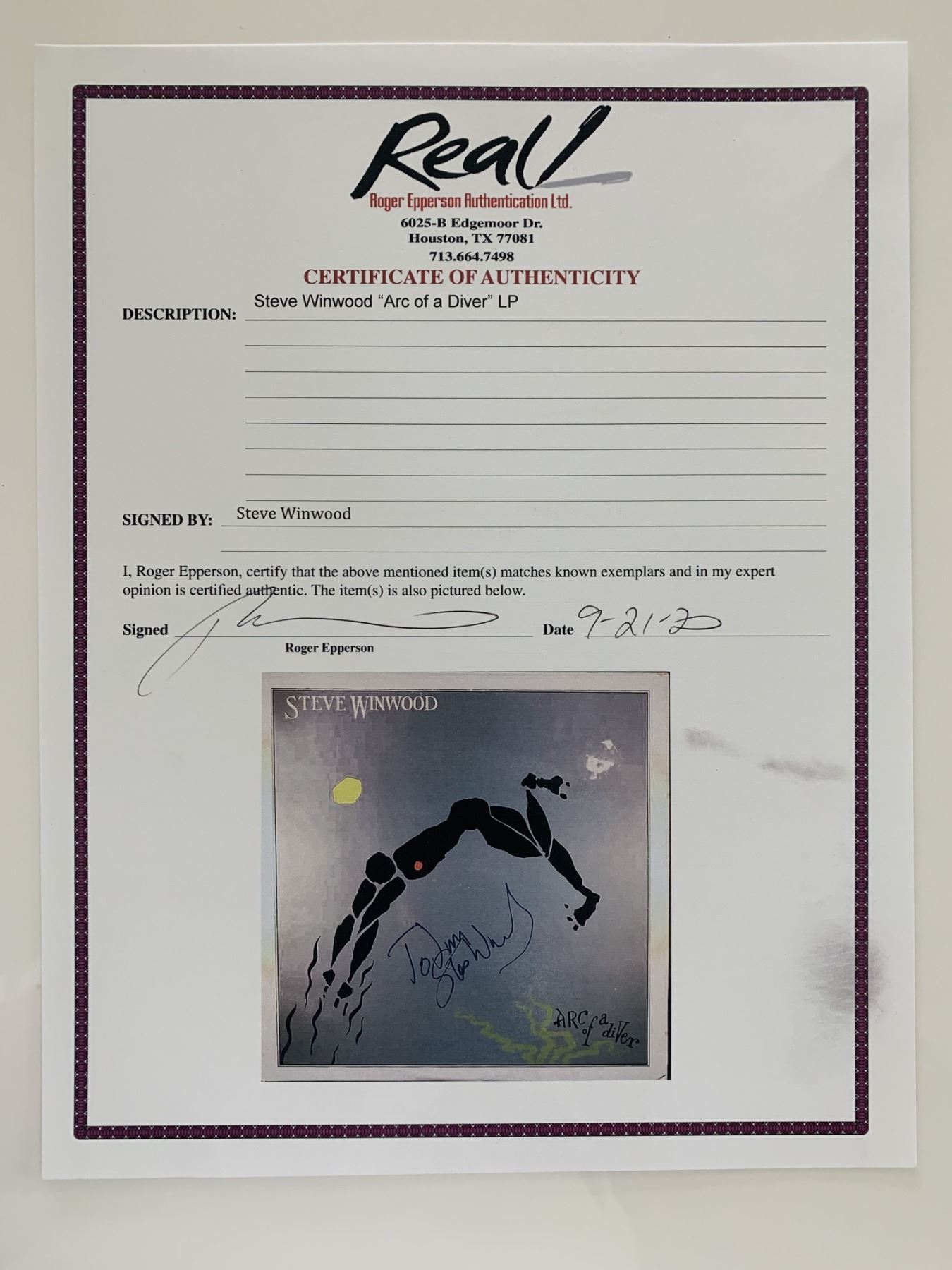 Steve Winwood Arc of a Diver signed album. Vinyl included