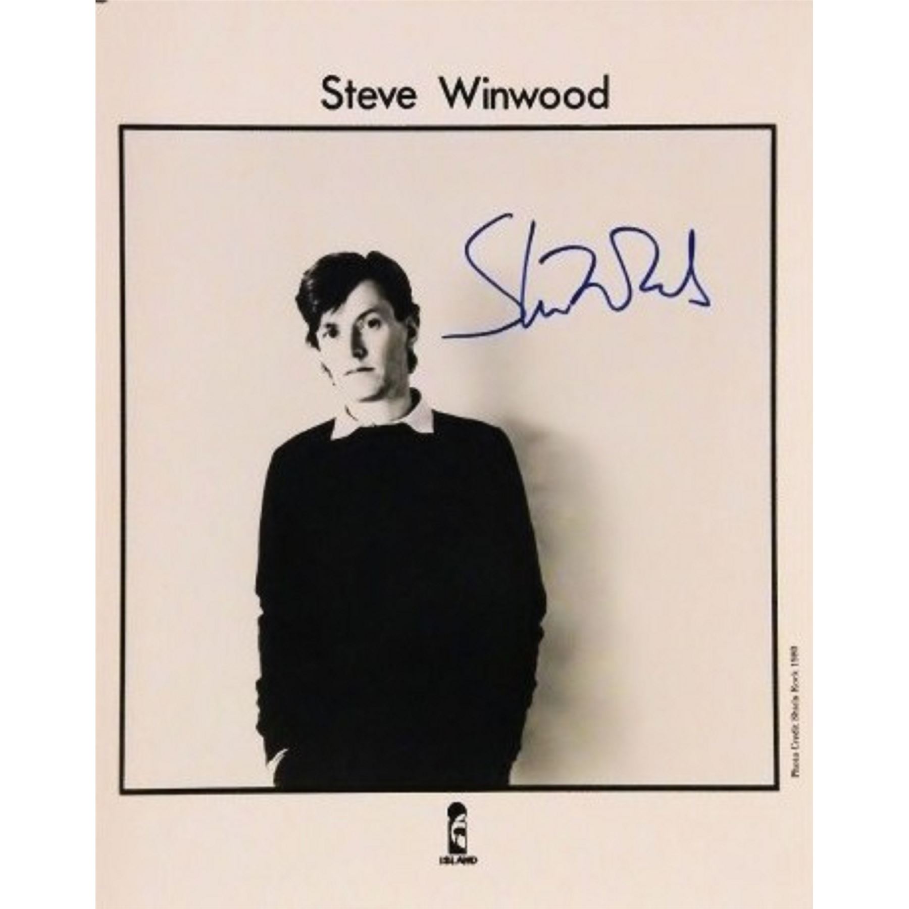 8 in. by 10 in. Black and white Island promotional photo autographed by Steve Winwood.