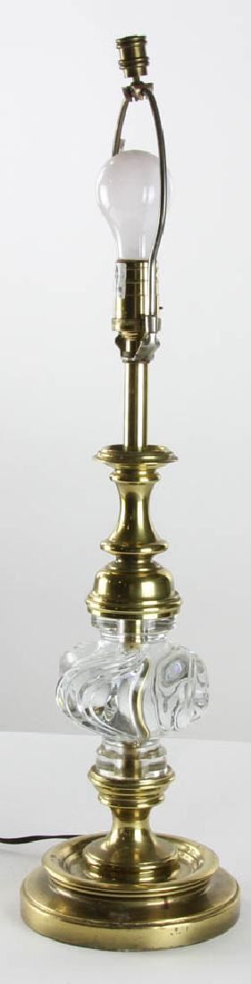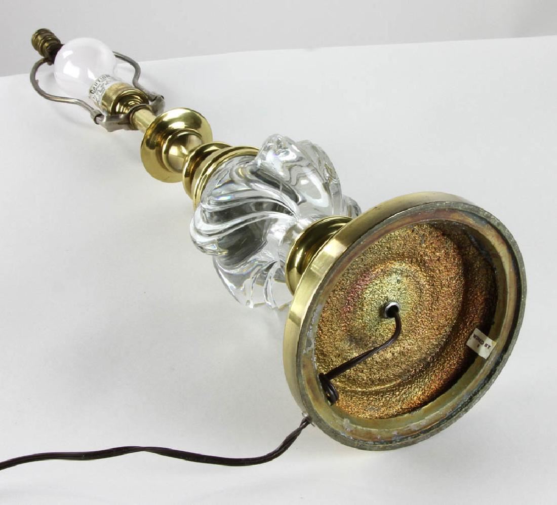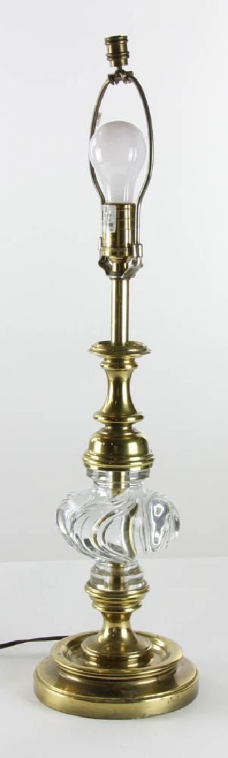 Stiffel brass and crystal lamp, crystal signed Baccarat, 27" H x 7" W. Provenance: Boca Raton, Florida estate.