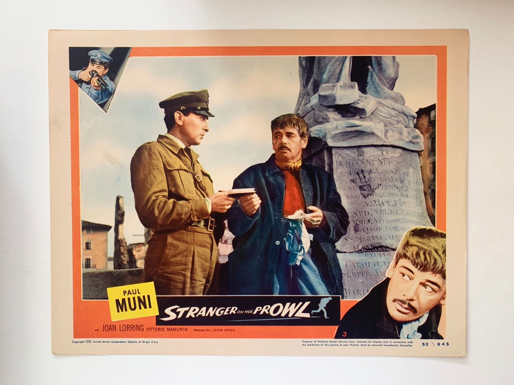 Stranger on the Prowl original 1953 vintage lobby card on heavy card stock. 11x14 inches