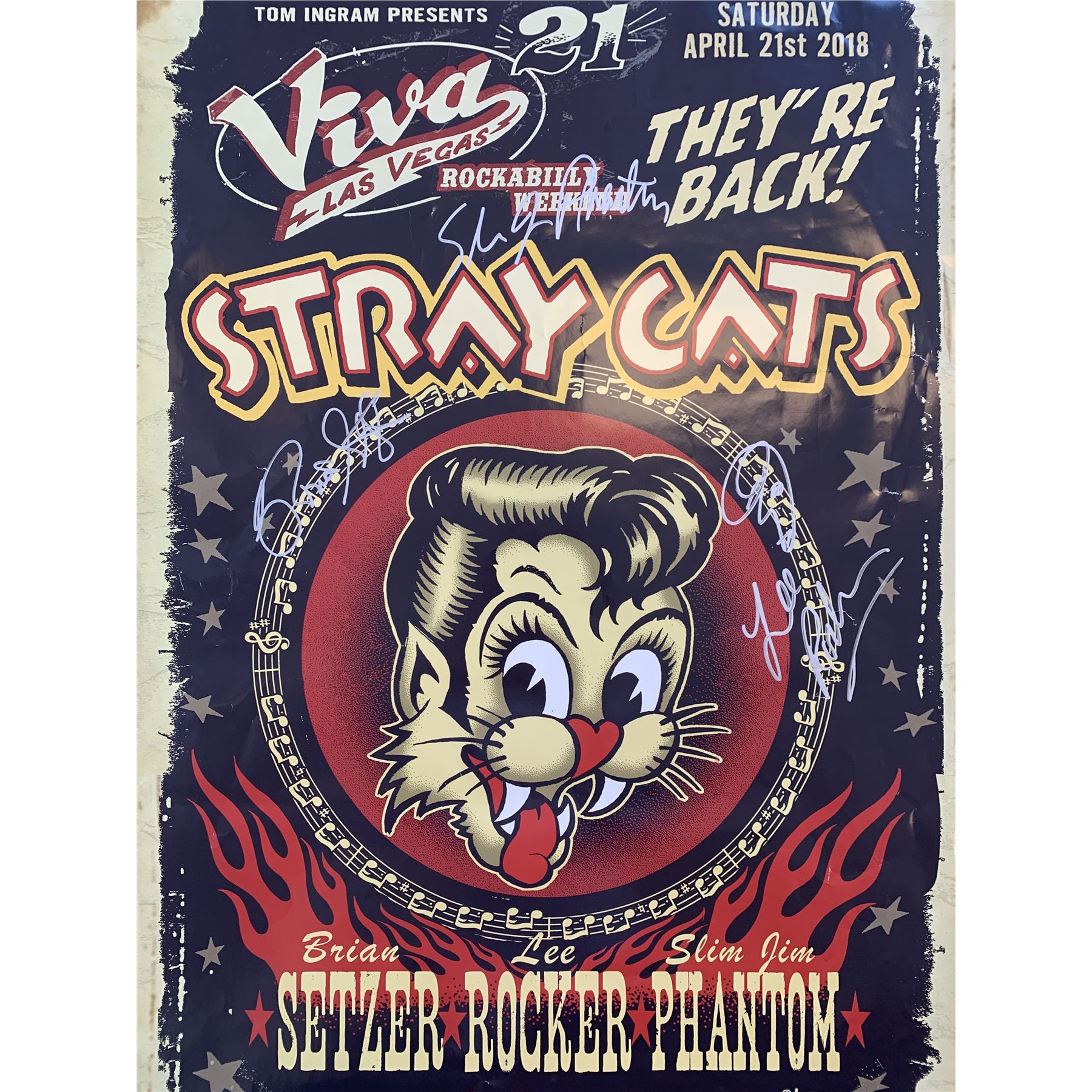 Stray Cats signed poster autographed by Brian Setzer, Slim Jim Phantom, Lee Rocker and Gary Setzer. 20x30 inches