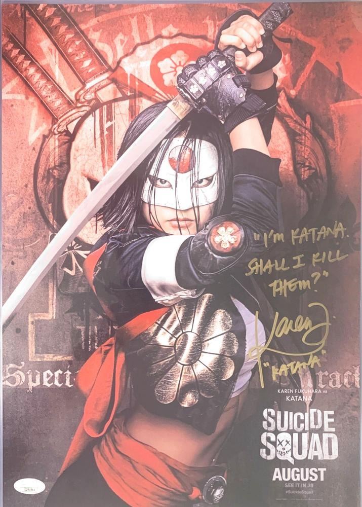 Suicide Squad Katana facsimile signed movie photo autographed by Karen Fukuhara. 8x10 inches. This item is a reprint of an original autograph