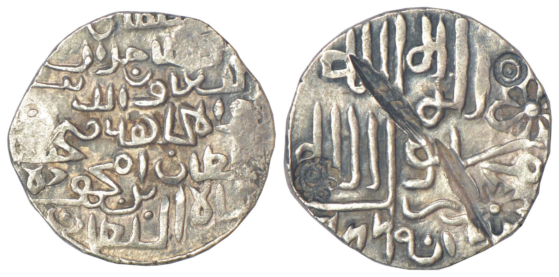 Sultans of Bengal, Silver tanka of Jalal al-Din Fath Shah (1481-1486 AD), Khazana mint, AH886, G&G B588, 10.47g. Obv: Arabic legend al-Sultan bin al-Sultan Jalal al-Dunya wa al-Din Abu al-Mujahid Fatahshah al-Sultan ibn Mahmud Shah al-Sultan. Rev: Shahada, mint-name and date in numbers.