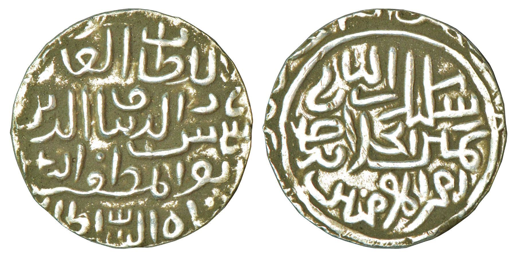 Sultans of Bengal, Shams al-Din Ilyas Shah (1342-1357 AD), silver tanka, Firuzabad mint, G&G B153, 10.83g. Obv: Arabic legend al-Sultan al-Ghazi Shams al-Dunyawa al-Din Abu al-MuzaffarIlyas Shah al-Sultan. Rev: Arabic legend in circle Sikandar al-Thani Yameen al-Khilafat Nasir Amir al-Mumineen, date & mint details in margin.