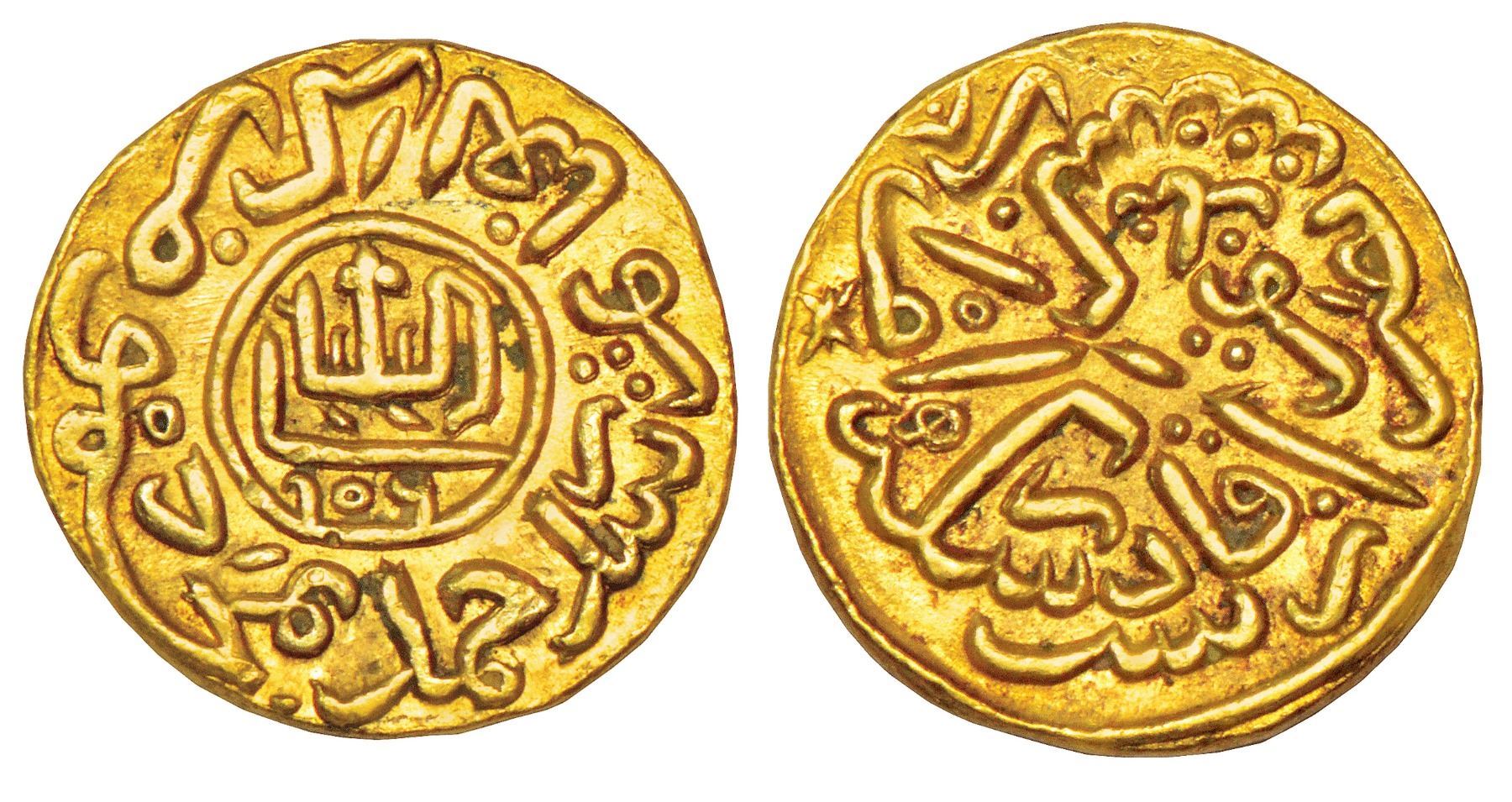 Mahmud I, also known as 'Begada' after his conquest of East and West Gujarat, was the most powerful of the Sultans of Gujarat. During his long reign, the Sultanate became a prominent hub of political and commercial activities in Western India.This extremely rare coin was struck towards the end of his reign, during a period marked by prosperity and tranquillity. Perhaps, only one or two specimens survive - Goron & Goenka were aware of it only through a bad quality picture, and supply no information about its weight or denomination. It bears very interesting poetic allusions to the Sultan's faith, piety and ambition in which he identifies himself as having the mystical powers of 'giving blessings'. There is a reference to 'Victory' in the legend; however, no immediate 'victory' is known to taken place around the issue of the coin. Most likely, the 'victory' is an allusion to the spiritual conquest of the Mahmud, who was a great devotee of Shaykh Ahmad Khattu Ganj Bakhsh, the patron Sufi saint of Gujarat. The Sultan lies buried in his company at the Roza complex of Sarkhej near Ahmadabad.