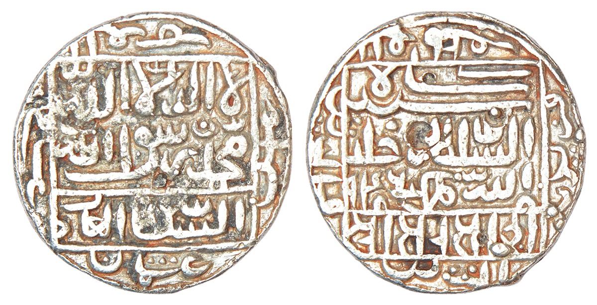 Sultans of Bengal, Chittagong Region Trade Coinage, silver tanka, in the name of Sher Shah Suri, first series, probably struck at Chittagong (Chatgaon), AH 946, G&G B1000, 11.08g. Obv: Kalima within square and names of four caliphs in margin. Rev: Arabic legend sher shah al-sultan khallada allah mulkahu, Devanagari legend Sri Serasahi within square; other titles in margins.