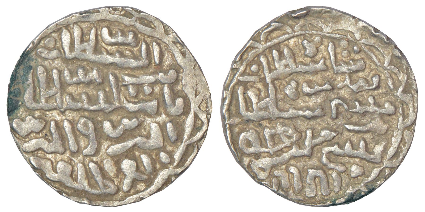 Sultans of Bengal, Silver rupee of Nasir al-din Nusrat Shah (1519-1531 AD), unclear mint, AH 931(retrograde?), G&G B851, 10.56g. Obv: Arabic legend al-Sultan bin al-Sultan Nasir al-Dunya wa al-Din Abu al-Muzaffar in a circle with scalloped border. Rev: Arabic legend Nusrat Shah Sultan bin Husain Shah Sultan al-Husaini Khallada Mulkahu in a circle with scalloped border.