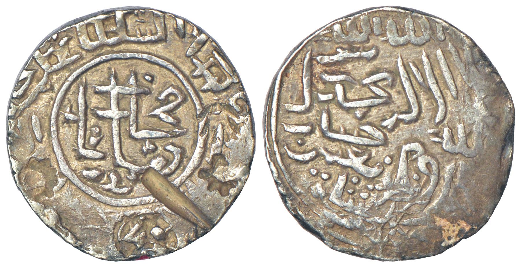 Sultans of Bengal, Silver tanka of Humayun (first reign 1530-1540 AD), 'Fathabad' type, G&G B956 (Listed as RR), 10.53g. Obv: Legend within circle Muhammad Humayun Ghazi, other titles and invocations in the margin. Rev: Shahada followed by invocation Yarzaqu Allah Man Yashao ba-Ghayr Hisab in crude Arabic script.