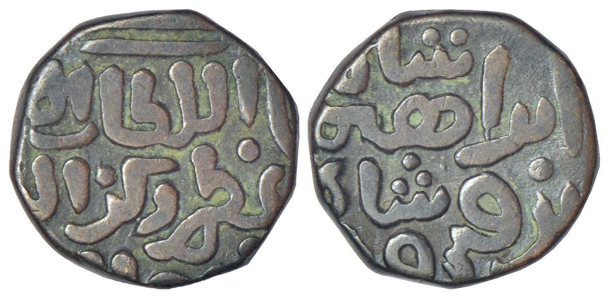 Sultans of Delhi, 'Khaljis, billon jital of Rukn al-Din Ibrahim (1296 AD), G&G D212, 3.48g. Obv: Arabic legend al-Sultan al a'zam rukn al -dulya wa'l din. Rev: Arabic legend ibrahim shah bin firuz shah.