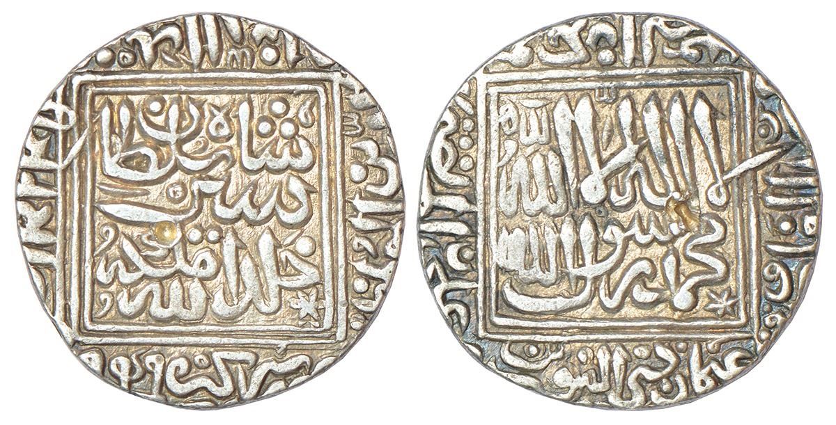 Sultans of Delhi, Suris, silver rupee of Sher Shah (1538-1545 AD), Shergarh mint at bottom, AH 949, G&G D802, 11.37g.